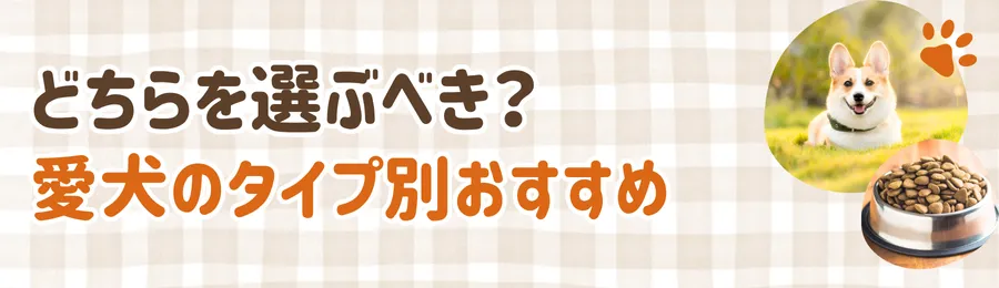 結局のところ、どちらが良いかは愛犬の年齢、犬種、活動量、健康状態によって異なります。以下に、タイプ別のおすすめをまとめました。