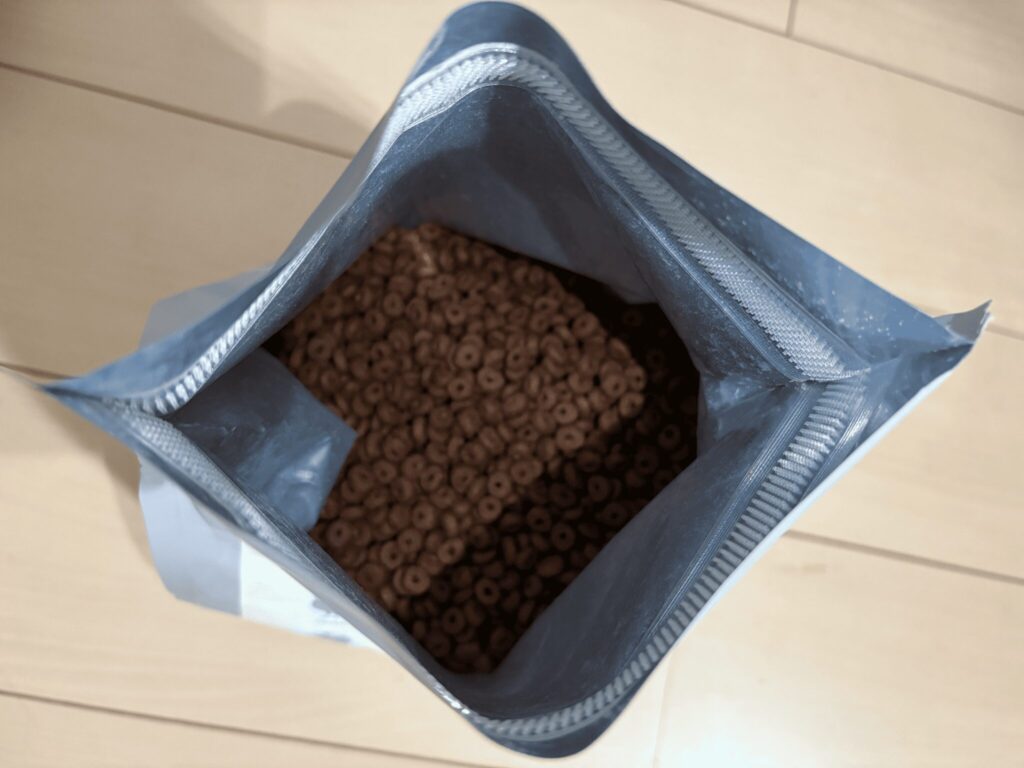 また、人間である飼い主さんには香りが少し強く感じられるかもしれませんが、これはチキン・サーモン・マグロ・白身魚など原材料の香りによるものです。